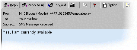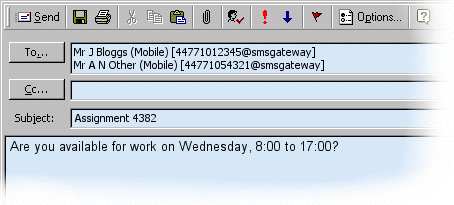 The example below shows how to send an SMS message by creating an email. You can set-up contacts in your address book so that your can send SMS messages with a few click of the mouse.