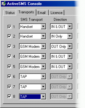 Each transport can be configured to use a GSM Modem, Handset, HTTP or the TAP