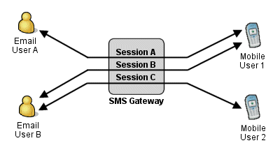 Our gateway can track multiple conversations with a single mobile phone. Session tracking will route SMS replies back to the originating user.
